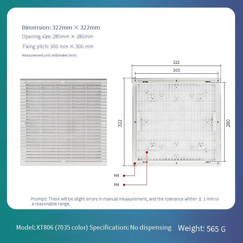 Za takojšnjo dostavo so vedno na voljo standardni plastični pokrovi prahu. Ta toplotna disipacija plastičnega pokrova prahu ima prezračeno zasnovo, ki optimizira poti pretoka zraka za izboljšanje učinkovitosti hlajenja. Dobro je za elektronske naprave in omare, ki jih je treba uporabljati dlje časa, in lahko obravnavajo potrebe različnih vrst industrijskih nastavitev.