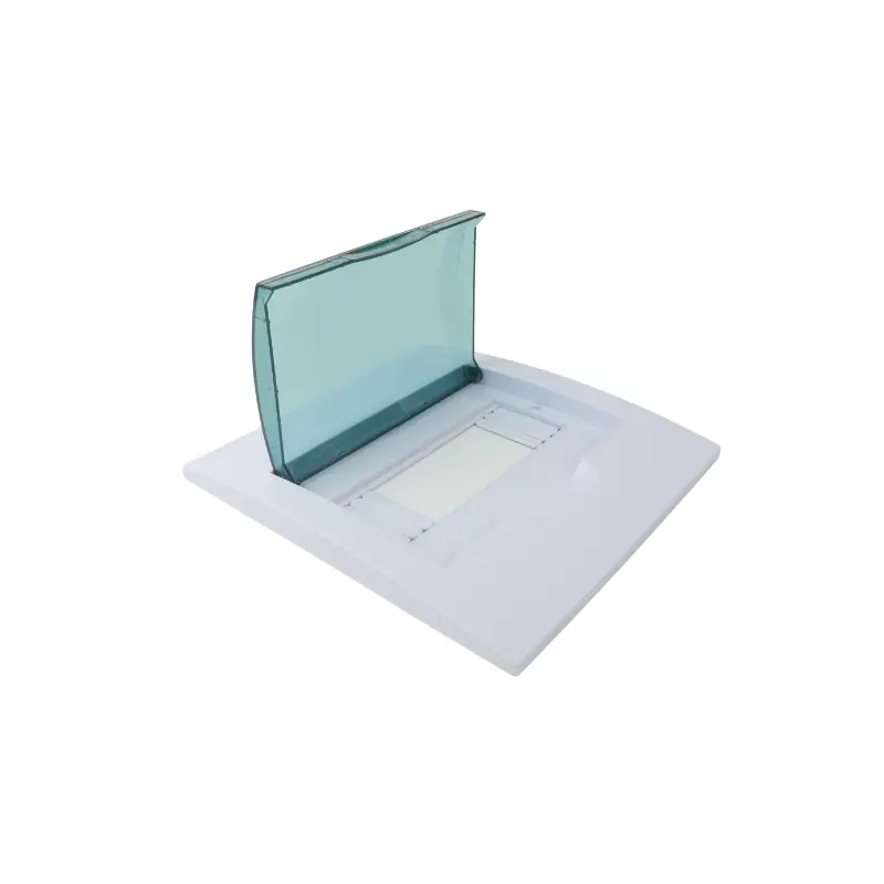 Pokrov za električno škatlo za gospodinjstvo je izdelan iz dveh materialov: PC in ABS. PC del je na voljo v zeleni ali rjavi, medtem ko je beli del izdelan iz ABS materiala, ki povečuje moč in izolacijske zmogljivosti plošče. PC Material ima visoko prepustnost svetlobe in UV odpornost, medtem ko ima ABS material močno mehansko trdnost.