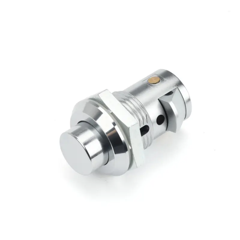 Model s potisnim gumbom se samodejno odklene, ko pritisnete gumb, in se zaklene, ko se vrata zaprejo, kar zagotavlja osnovno varnostno zaščito. Model zaklepne ključavnice z zatičem uporablja zatični mehanizem, ki omogoča samo vrtenje z ustreznim ključem, kar zagotavlja funkcijo proti kraji. Oba modela uporabljata konstrukcijo iz cinkove zlitine, ki zagotavlja določeno stopnjo trdnosti, in imata dodana vodoodporna tesnila za dodatno praktičnost. Cilindrična ključavnica iz cinkove zlitine prodajnih avtomatov ima svetlo kromirano površino za odpornost proti koroziji. Največja debelina nameščenih vratnih plošč je 10 mm. (Za materiale iz nerjavečega jekla se obrnite na nas. Trenutno izdelujemo kalupe.)